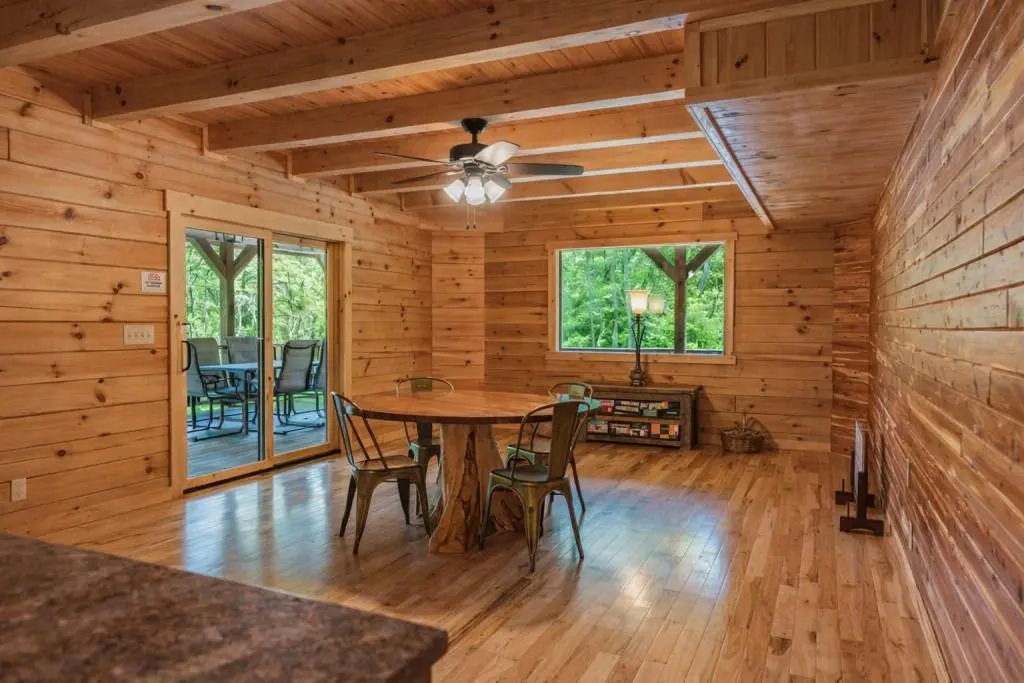 The cabin, the atmosphere, the location were all top notch. We went in with no experience in the area and were not disappointed in everything there is to offer here. We are already looking into an opportunity to return. This place would easily accommodate 5 couples with kids and keep them entertained. We enjoyed the hiking and we were able to visit two breweries and a winery. Very short driving distance to Old Man's Cave parking for some great hikes.