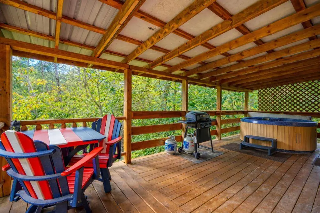 Upon our arrival, we were impressed with how clean the cabin was. Even the porch was free of spider webs and we enjoyed sitting at the front and on the deck and enjoyed our meals and coffee outside. We used the grill every night. Although we did not use the hot tub it looked like it was in good shape and clean. We will be booking for a fall getaway. The reason I give a 3 for facilities is the toilet will tend to run after flushing and one of the arms of the chairs on the deck is broken.